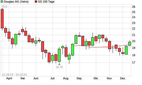 Mit dem Anstieg auf 19,41 EUR hat die Douglas AG-Aktie am 09.12.2024 die 100-Tage-Linie nach oben gekreuzt.