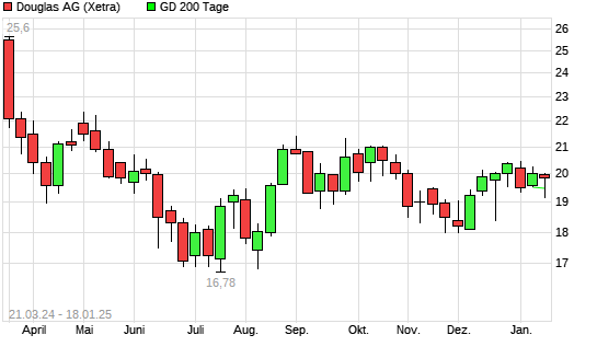 Mit dem Anstieg auf 19,84 EUR hat die Douglas AG-Aktie am 17.01.2025 die 200-Tage-Linie nach oben gekreuzt.