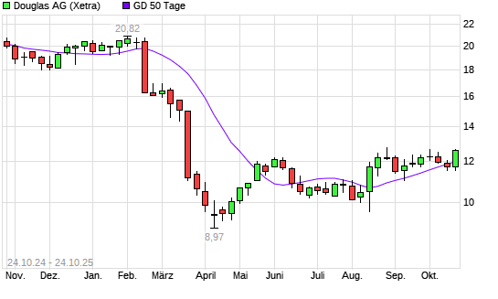 Mit dem Anstieg auf 11,98 EUR hat die Douglas AG-Aktie am 23.10.2025 die 50-Tage-Linie nach oben gekreuzt.