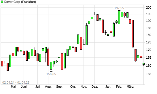 Mit dem Rücksetzer auf 160,00 EUR hat die Dover-Aktie (ISIN US2600031080) am 31.03.2025 ein neues 6-Monats-Tief erreicht und damit den Kurs vom 14.03.2025 eingestellt.