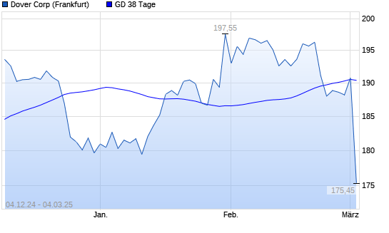 Mit dem Anstieg auf 190,80 EUR hat die Dover-Aktie am 03.03.2025 die 38-Tage-Linie nach oben gekreuzt.