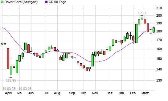 Mit dem Anstieg auf 185,10 EUR hat die Dover-Aktie am 18.03.2026 die 50-Tage-Linie nach oben gekreuzt.
