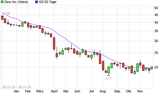 Mit dem Anstieg auf 20,20 EUR hat die Dow-Aktie am 25.11.2025 die 50-Tage-Linie nach oben gekreuzt.