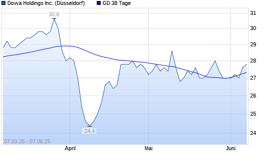 Mit dem Anstieg auf 27,60 EUR hat die Dowa Holdings-Aktie am 06.06.2025 die 38-Tage-Linie nach oben gekreuzt.