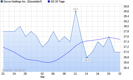 Mit dem Rücksetzer auf 27,60 EUR hat die Dowa Holdings-Aktie am 21.05.2025 die 20-Tage-Linie nach unten gekreuzt.