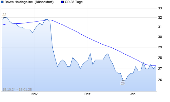 Mit dem Rücksetzer auf 27,20 EUR hat die Dowa Holdings-Aktie am 14.01.2025 die 38-Tage-Linie nach unten gekreuzt.