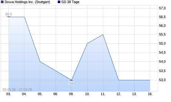 Mit dem Rücksetzer auf 52,50 EUR hat die Dowa Holdings-Aktie am 16.03.2026 die 38-Tage-Linie nach unten gekreuzt.