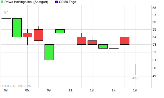 Mit dem Rücksetzer auf 49,00 EUR hat die Dowa Holdings-Aktie am 19.03.2026 die 50-Tage-Linie nach unten gekreuzt.