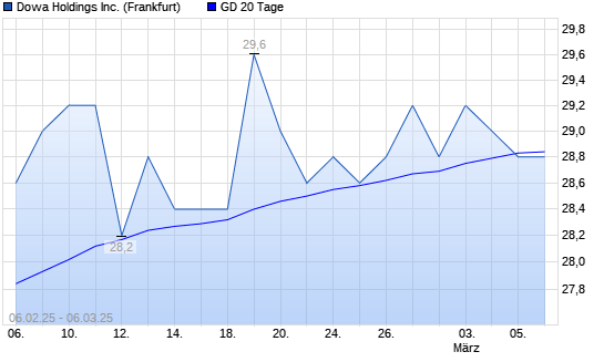 Mit dem Rücksetzer auf 28,80 EUR hat die Dowa Holdings-Aktie am 05.03.2025 die 20-Tage-Linie nach unten gekreuzt.Die Dowa Holdings-Aktie befindet sich seit dem 16.10.2024 im langfristigen ...weiterlesen