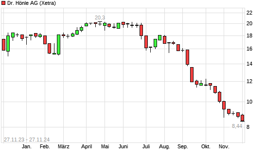 Mit dem Rücksetzer auf 8,54 EUR hat die Dr. Hönle-Aktie (ISIN DE0005157101) am 26.11.2024 ein neues 10-Jahres-Tief erreicht und damit den Kurs vom 21.11.2024 eingestellt.