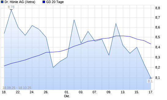 Mit dem Anstieg auf 8,44 EUR hat die Dr. Hönle-Aktie am 17.10.2025 die 20-Tage-Linie nach oben gekreuzt.