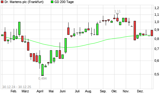 Mit dem Anstieg auf 0,89 EUR hat die Dr. Martens-Aktie am 29.12.2025 die 200-Tage-Linie nach oben gekreuzt.