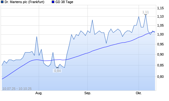 Mit dem Anstieg auf 1,02 EUR hat die Dr. Martens-Aktie am 09.10.2025 die 38-Tage-Linie nach oben gekreuzt.