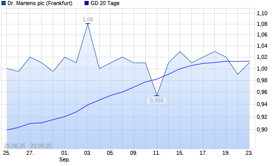 Mit dem Rücksetzer auf 0,99 EUR hat die Dr. Martens-Aktie am 22.09.2025 die 20-Tage-Linie nach unten gekreuzt.