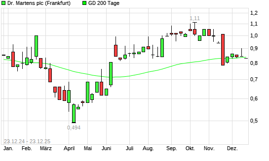Mit dem Rücksetzer auf 0,83 EUR hat die Dr. Martens-Aktie am 22.12.2025 die 200-Tage-Linie nach unten gekreuzt.