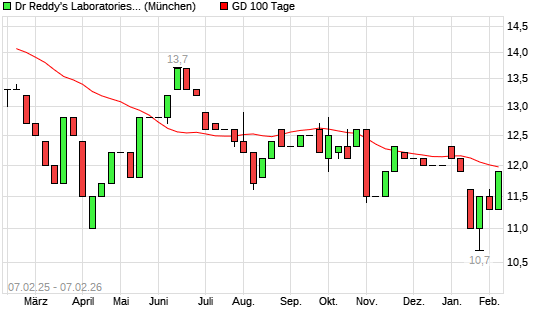 Mit dem Anstieg auf 12,00 EUR hat die Dr Reddy's Laboratories-Aktie am 06.02.2026 die 100-Tage-Linie nach oben gekreuzt.