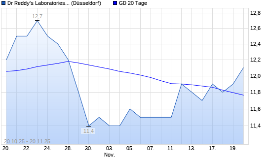 Mit dem Anstieg auf 11,90 EUR hat die Dr Reddy's Laboratories-Aktie am 19.11.2025 die 20-Tage-Linie nach oben gekreuzt.