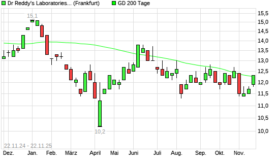 Mit dem Anstieg auf 12,30 EUR hat die Dr Reddy's Laboratories-Aktie am 21.11.2025 die 200-Tage-Linie nach oben gekreuzt.
