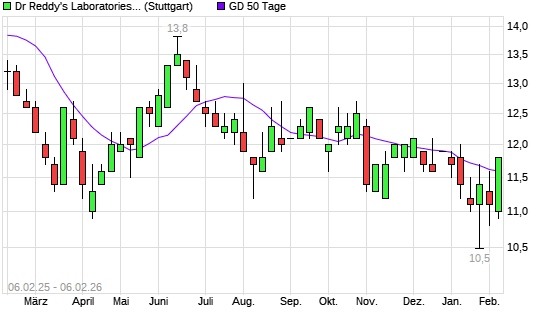 Mit dem Anstieg auf 11,70 EUR hat die Dr Reddy's Laboratories-Aktie am 05.02.2026 die 50-Tage-Linie nach oben gekreuzt.