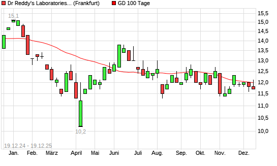 Mit dem Rücksetzer auf 11,70 EUR hat die Dr Reddy's Laboratories-Aktie am 18.12.2025 die 100-Tage-Linie nach unten gekreuzt.