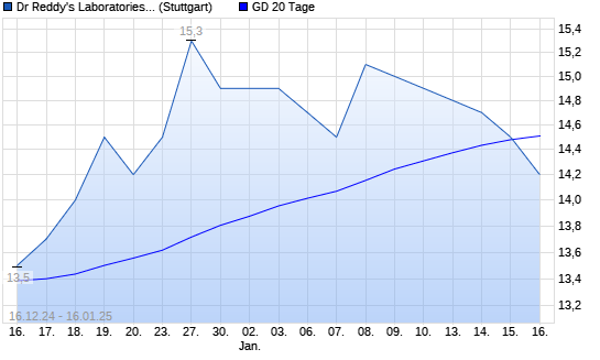 Mit dem Rücksetzer auf 14,60 EUR hat die Dr Reddy's Laboratories-Aktie am 15.01.2025 die 20-Tage-Linie nach unten gekreuzt.