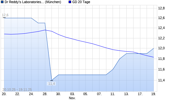 Mit dem Rücksetzer auf 11,80 EUR hat die Dr Reddy's Laboratories-Aktie am 18.11.2025 die 20-Tage-Linie nach unten gekreuzt.