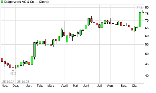 Mit dem Anstieg auf 77,10 EUR hat die Drägerwerk Vz-Aktie (ISIN DE0005550636) am 24.10.2025 ein neues 3-Jahres-Hoch erreicht und damit den Kurs vom 20.10.2025 eingestellt.