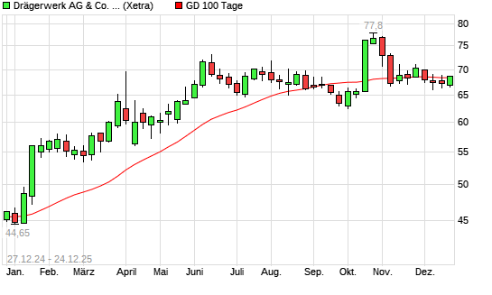Mit dem Anstieg auf 68,30 EUR hat die Drägerwerk Vz-Aktie am 23.12.2025 die 100-Tage-Linie nach oben gekreuzt.