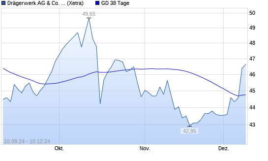 Mit dem Anstieg auf 45,15 EUR hat die Drägerwerk Vz-Aktie am 09.12.2024 die 38-Tage-Linie nach oben gekreuzt.