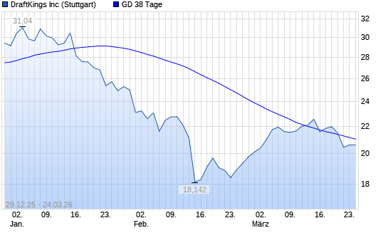 Mit dem Anstieg auf 21,39 EUR hat die DraftKings-Aktie am 23.03.2026 die 38-Tage-Linie nach oben gekreuzt.