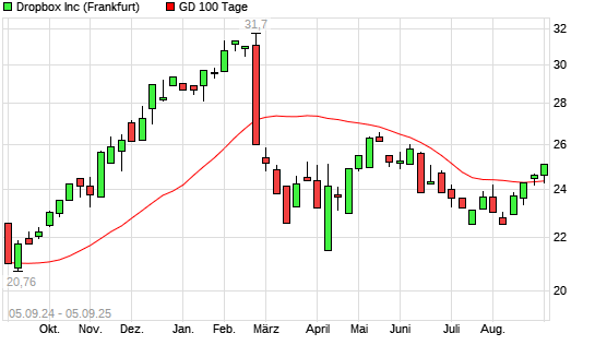 Mit dem Anstieg auf 24,69 EUR hat die Dropbox-Aktie am 04.09.2025 die 100-Tage-Linie nach oben gekreuzt.