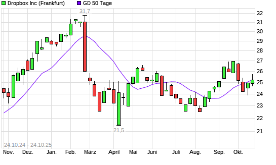 Mit dem Anstieg auf 25,23 EUR hat die Dropbox-Aktie am 23.10.2025 die 50-Tage-Linie nach oben gekreuzt.