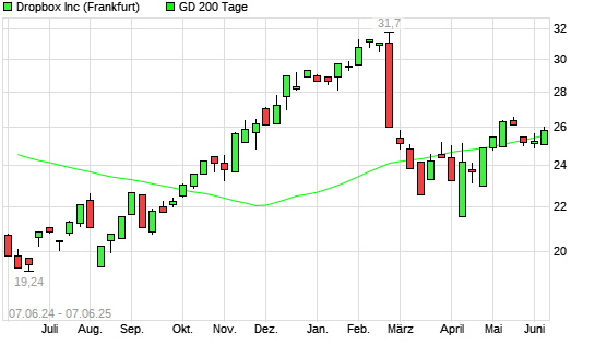 Mit dem Anstieg auf 25,81 EUR hat die Dropbox-Aktie am 06.06.2025 die 200-Tage-Linie nach oben gekreuzt.Die Dropbox-Aktie befand sich seit dem 05.06.2025 im langfristigen Abwärtstrend und hat ...weiterlesen
