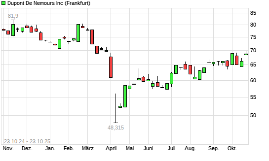 Mit dem Anstieg auf 69,82 EUR hat die DuPont-Aktie (ISIN US26614N1028) am 22.10.2025 ein neues 6-Monats-Hoch erreicht und damit den Kurs vom 21.10.2025 eingestellt.
