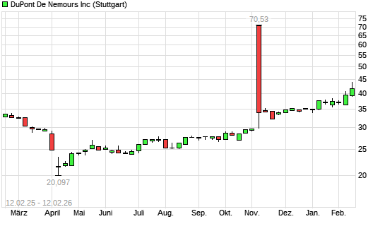 Mit dem Anstieg auf 42,31 EUR hat die DuPont-Aktie (ISIN US26614N1028) am 11.02.2026 ein neues All-Time-High erreicht und damit den Kurs vom 06.02.2026 eingestellt.