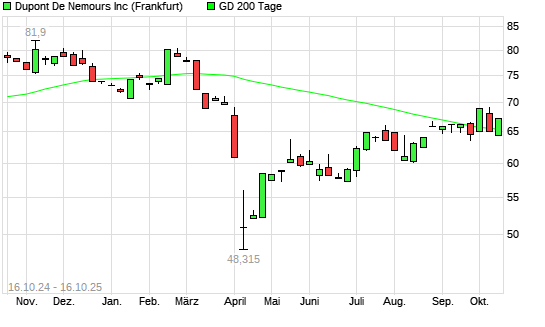 Mit dem Anstieg auf 67,02 EUR hat die DuPont-Aktie am 15.10.2025 die 200-Tage-Linie nach oben gekreuzt.