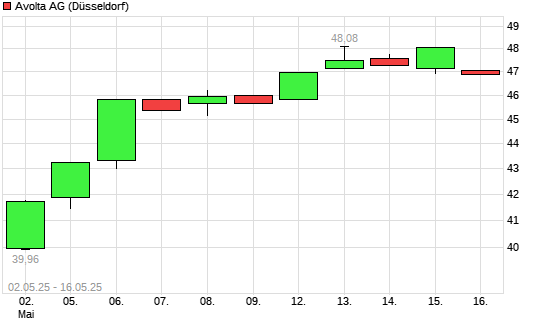 Mit dem Anstieg auf 47,40 EUR hat die Dufry-Aktie (ISIN CH0023405456) am 15.05.2025 ein neues 3-Jahres-Hoch erreicht und damit den Kurs vom 13.05.2025 eingestellt.