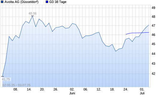 Mit dem Anstieg auf 46,76 EUR hat die Dufry-Aktie am 02.07.2025 die 38-Tage-Linie nach oben gekreuzt.