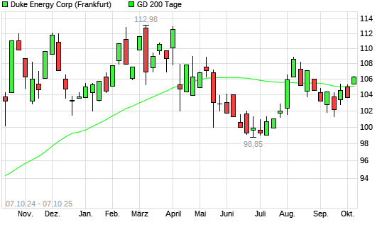 Mit dem Anstieg auf 106,36 EUR hat die Duke Energy-Aktie am 06.10.2025 die 200-Tage-Linie nach oben gekreuzt.