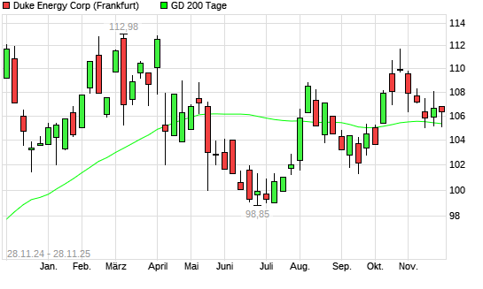 Mit dem Anstieg auf 106,74 EUR hat die Duke Energy-Aktie am 27.11.2025 die 200-Tage-Linie nach oben gekreuzt.