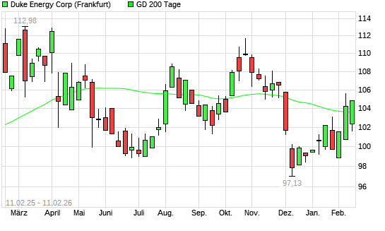 Mit dem Anstieg auf 103,84 EUR hat die Duke Energy-Aktie am 10.02.2026 die 200-Tage-Linie nach oben gekreuzt.