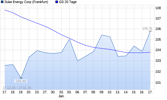 Mit dem Rücksetzer auf 103,88 EUR hat die Duke Energy-Aktie am 16.01.2025 die 20-Tage-Linie nach unten gekreuzt.