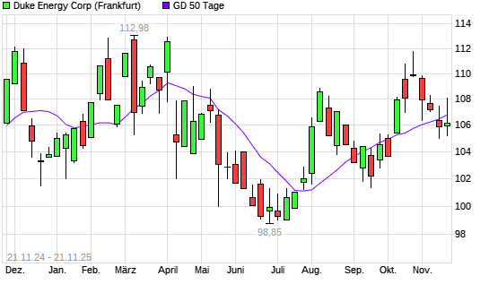Mit dem Rücksetzer auf 106,30 EUR hat die Duke Energy-Aktie am 20.11.2025 die 50-Tage-Linie nach unten gekreuzt.