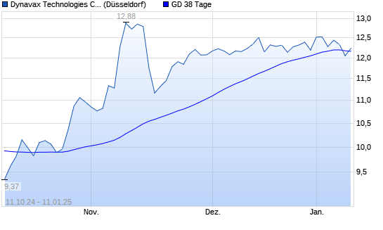 Mit dem Rücksetzer auf 11,90 EUR hat die Dynavax Technologies-Aktie am 10.01.2025 die 38-Tage-Linie nach unten gekreuzt.