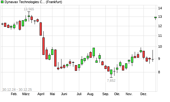 Mit dem Anstieg auf 12,96 EUR hat die Dynavax Technologies-Aktie (ISIN US2681582019) am 29.12.2025 ein neues 6-Monats-Hoch erreicht und damit den Kurs vom 26.11.2025 eingestellt.Die Dynavax ...weiterlesen