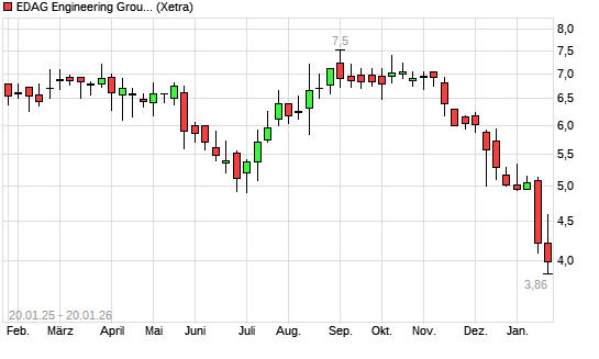Mit dem Rücksetzer auf 4,11 EUR hat die EDAG Engineering Group-Aktie (ISIN CH0303692047) am 19.01.2026 ein neues All-Time-Low erreicht und damit den Kurs vom 16.01.2026 eingestellt.