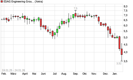 Mit dem Rücksetzer auf 3,67 EUR hat die EDAG Engineering Group-Aktie (ISIN CH0303692047) am 23.01.2026 ein neues All-Time-Low erreicht und damit den Kurs vom 22.01.2026 eingestellt.