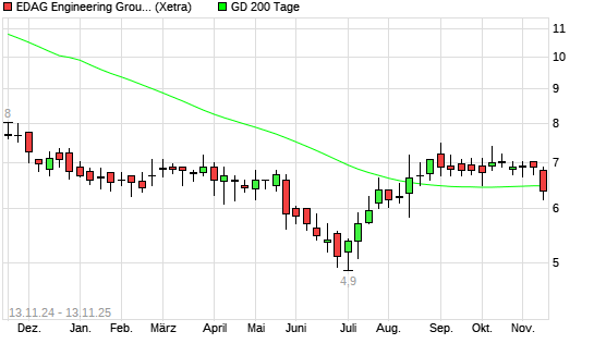 Mit dem Rücksetzer auf 6,36 EUR hat die EDAG Engineering Group-Aktie am 12.11.2025 die 200-Tage-Linie nach unten gekreuzt.