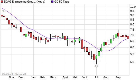 Mit dem Rücksetzer auf 6,54 EUR hat die EDAG Engineering Group-Aktie am 02.10.2025 die 50-Tage-Linie nach unten gekreuzt.