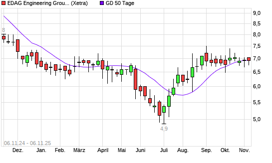Mit dem Rücksetzer auf 6,58 EUR hat die EDAG Engineering Group-Aktie am 05.11.2025 die 50-Tage-Linie nach unten gekreuzt.
